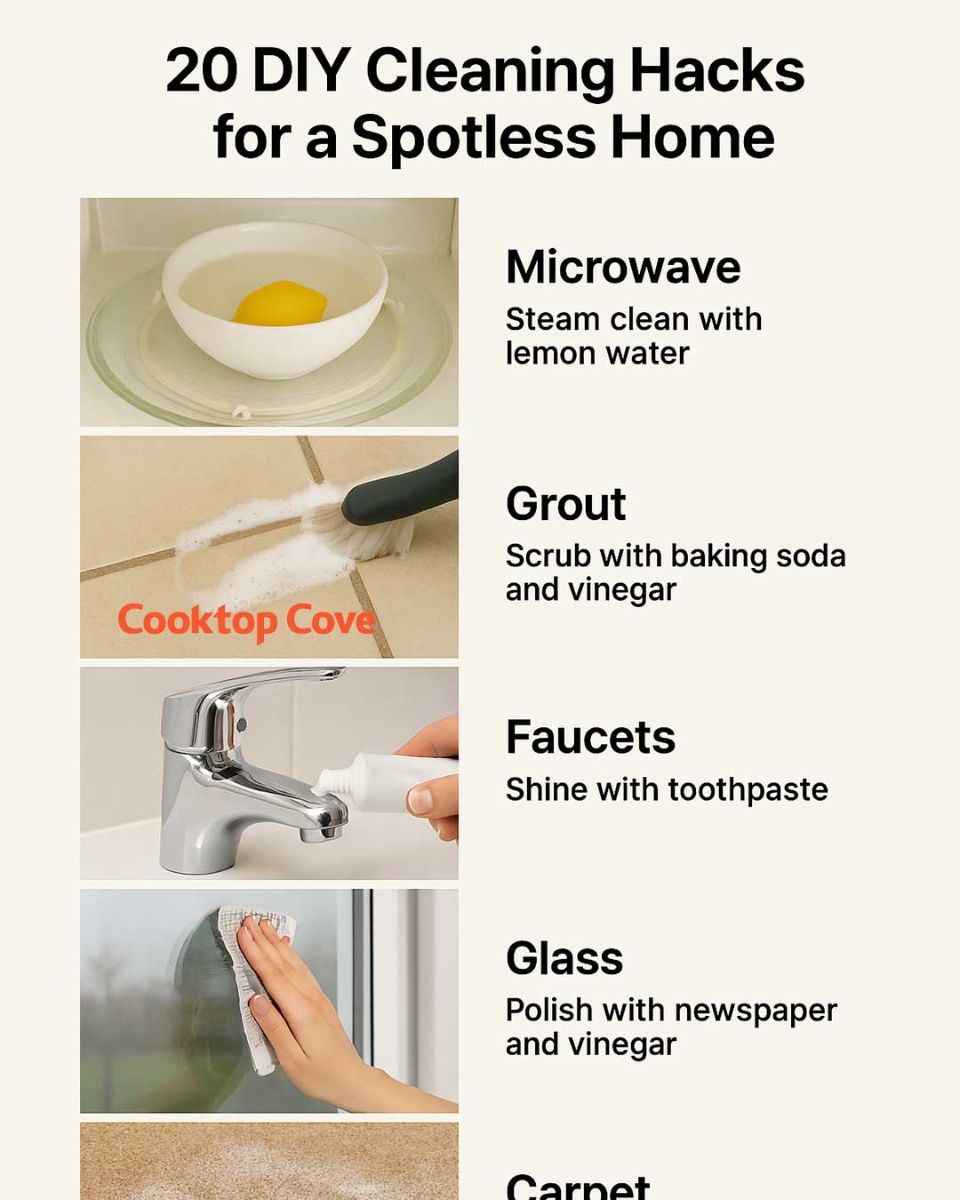 These hacks utilize common household items, transforming them into powerful cleaning tools. Whether you’re tackling stubborn stains, freshening up spaces, or maintaining a sparkling kitchen, these 20 DIY cleaning hacks will help you achieve a spotless home effortlessly.