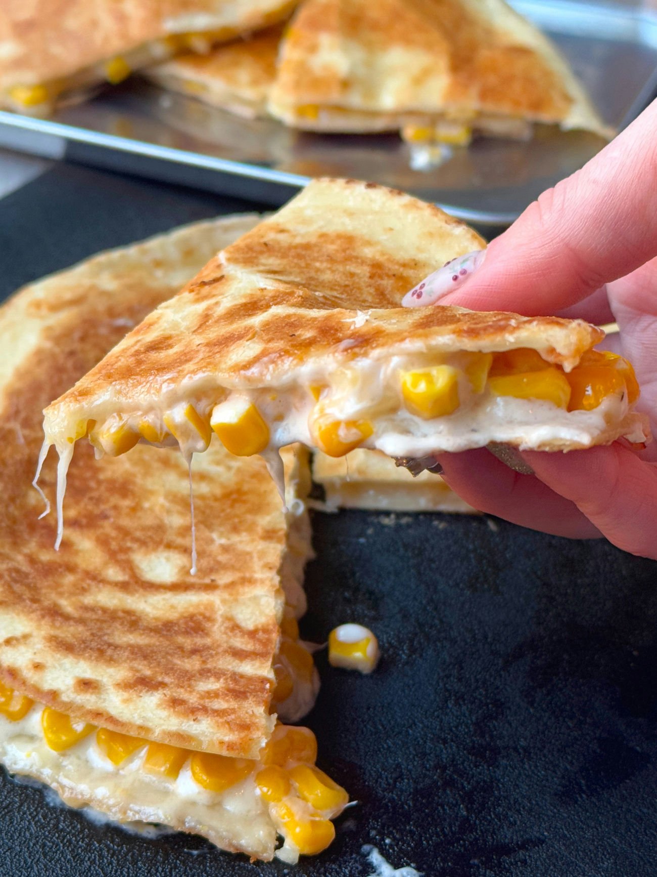 Creamy, sweet, and incredibly cheesy, these fusion quesadillas are a perfect quick meal or snack. Yields: 2 quesadillas (serves 2-4) Prep time: 5 minutes Cook time: 10 minutes Ingredients 16 oz (about 1 ½ cups) canned corn, drained well ⅓ cup mayonnaise ½ cup shredded mozzarella cheese 2-3 tablespoons unsalted butter, divided 4 large flour tortillas Kosher salt … Read more