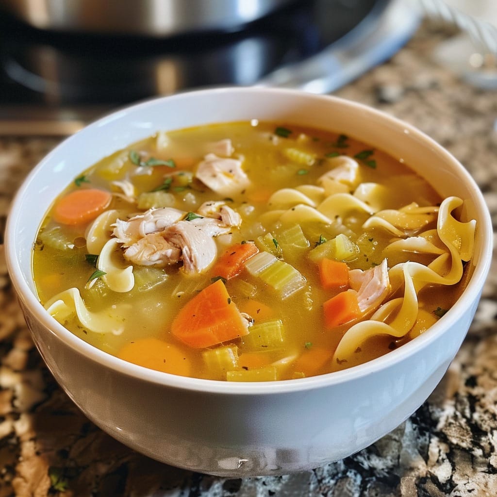 Chicken Noodle Soup is a classic comfort food that warms the soul and soothes the senses. This hearty and flavorful soup is filled with tender chicken, wholesome vegetables, and comforting noodles in a savory broth. Perfect for cold days, this soup is easy to make and loved by all.