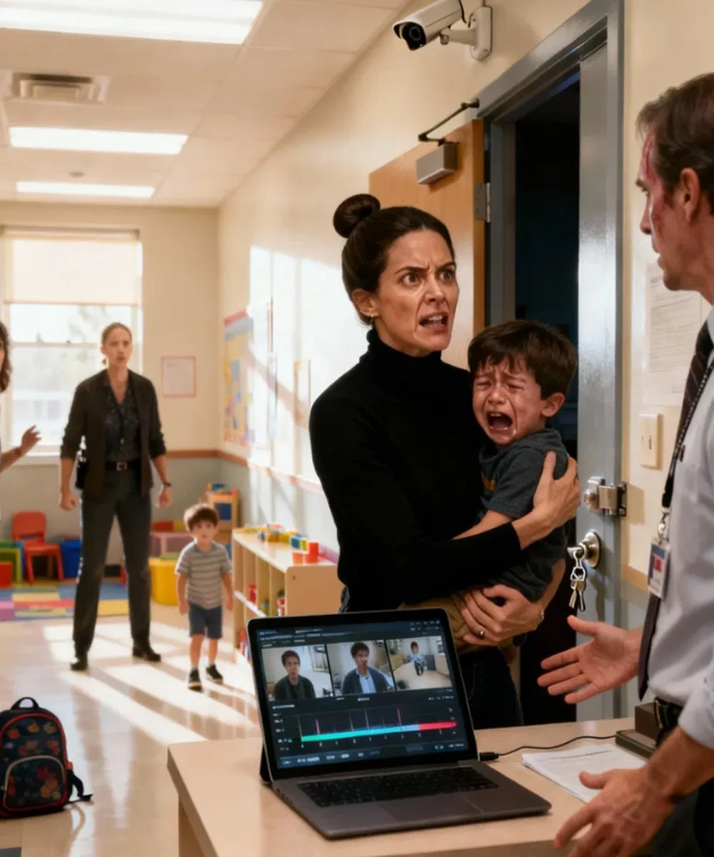 I dropped my son off like any other day—until a teacher stopped me and quietly said, “Please don’t go yet.” My heart dropped as I heard my child screaming from behind a locked door. I burst inside and went numb. My son was trembling, and the caregiver scoffed, “He’s just being dramatic—stay out of it.” I swept him into my arms and demanded the security footage. The director’s face drained of color. “You… weren’t meant to see that,” she said. What I discovered next sealed my resolve—someone would be held accountable.