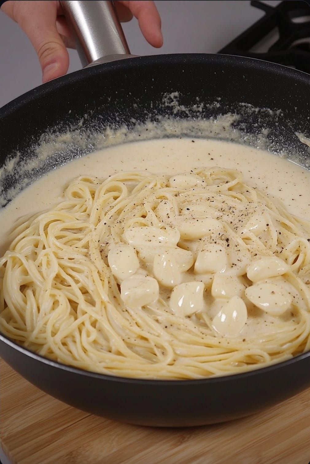 This simple Creamy Garlic Pasta recipe creates a luxurious, quick weeknight meal. It features pasta coated in a rich, velvety sauce made from heavy cream, copious amounts of garlic, and fresh Parmesan cheese.