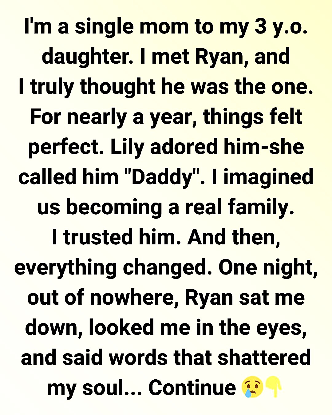 I’m 34, a single mother to my beautiful three-year-old daughter, Lily. For the first time in years I let myself believe in love again. I met Ryan — a man who made my heart race, who made me laugh, who held me close and whispered about our future. I truly thought he was the one.