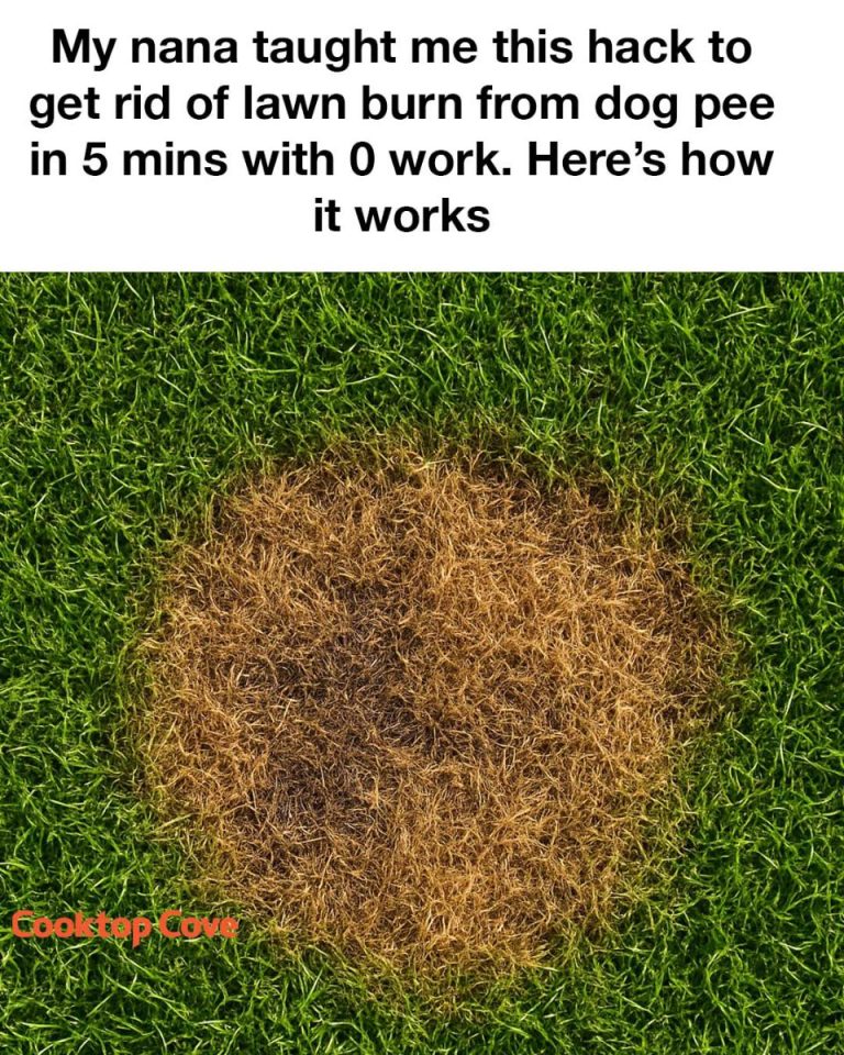 My nana taught me this hack to get rid of lawn burn from dog pee in 5 mins with 0 work. Here’s how it works