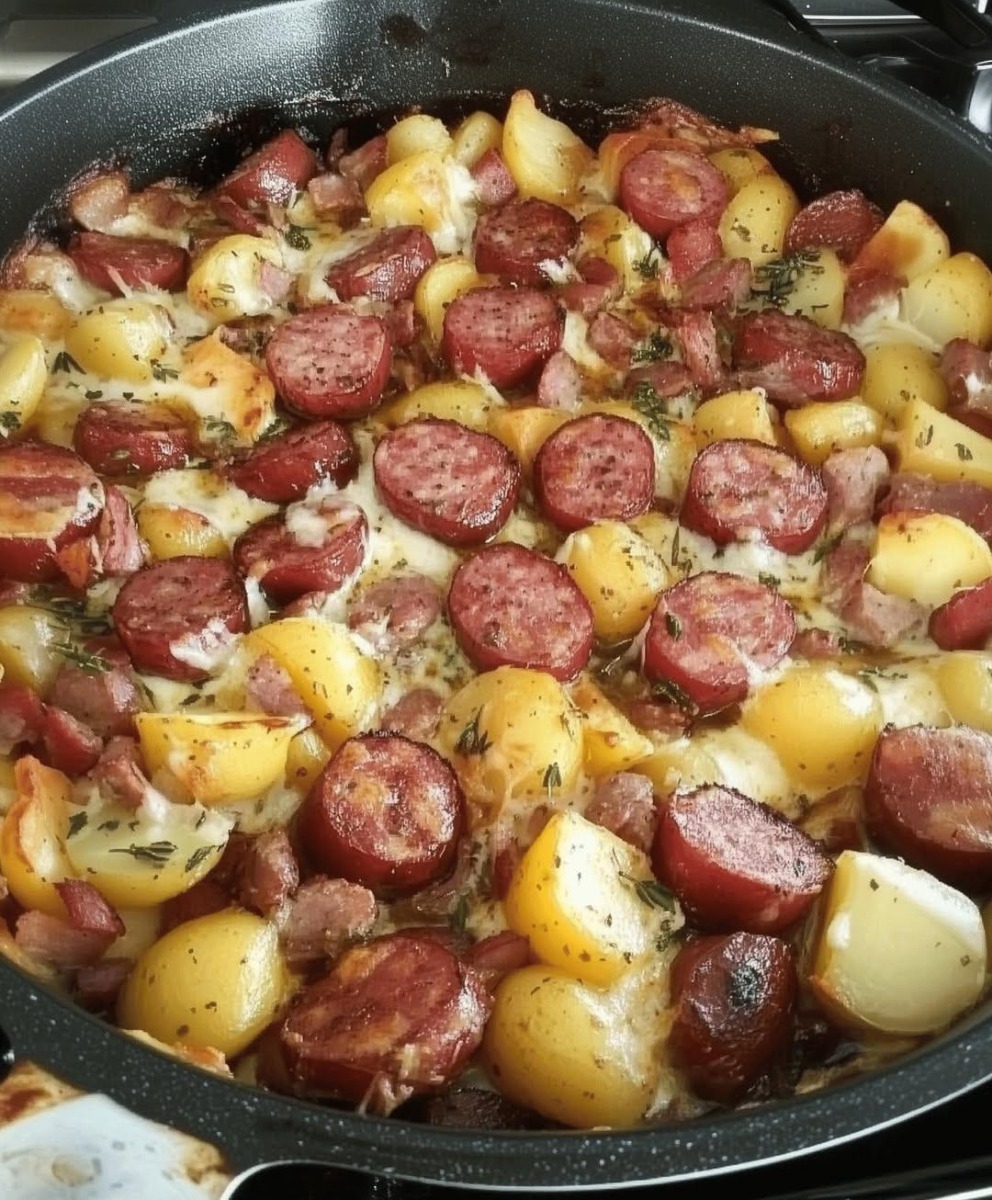 The oven timer chimed, and the rich, smoky aroma of perfectly roasted sausage and golden potatoes wafted through the kitchen. I pulled out the sizzling pan, eager to dig in.