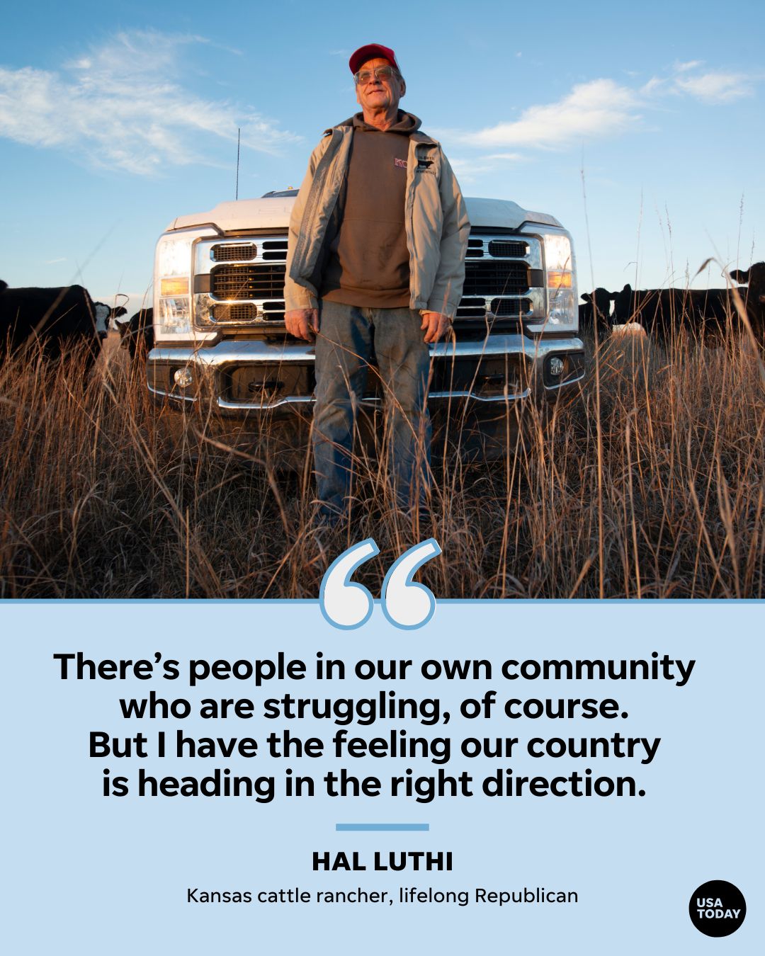 The image featuring Hal Luthi, a Kansas cattle rancher and lifelong Republican, highlights the varied opinions Americans hold regarding Donald Trump’s presidency and its effects on their lives.