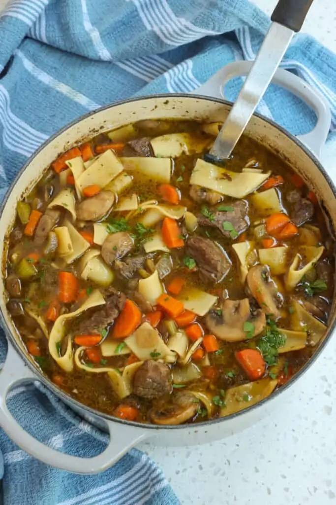 As the soup assembles, a portion of those perfectly cooked noodles finds its place in serving bowls, eagerly awaiting the hot embrace of the beef and vegetable-infused broth. Optionally garnished with fresh parsley, each serving is a testament to the simplicity of a well-crafted dish that warms the heart and satisfies the soul. With approximately 350-400 calories per serving, this Beef Noodle Soup not only delights the palate but also nourishes the body with a balanced blend of protein, carbohydrates, and comforting warmth. Whether shared with loved ones or enjoyed in quiet solitude, this classic rendition of Beef Noodle Soup promises to be a timeless and heartwarming addition to your culinary repertoire.