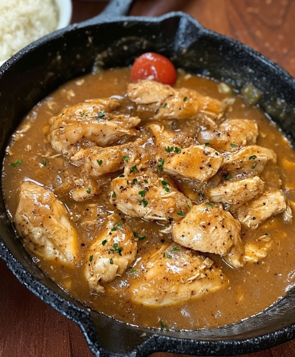 This easy, set-it-and-forget-it recipe transforms a few simple ingredients into the ultimate comfort food. The chicken becomes incredibly tender and juicy, smothered in a rich, savory gravy that’s perfect over mashed potatoes, rice, or noodles.