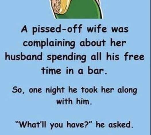 The husband’s grin was his silent attempt to communicate his perspective. A night at the bar with his friends was all it took to bring him joy, and he casually extended an invitation to her, thinking little of it. She, on the other hand, was thrilled at the prospect—finally, a chance to observe her husband in his nocturnal domain.