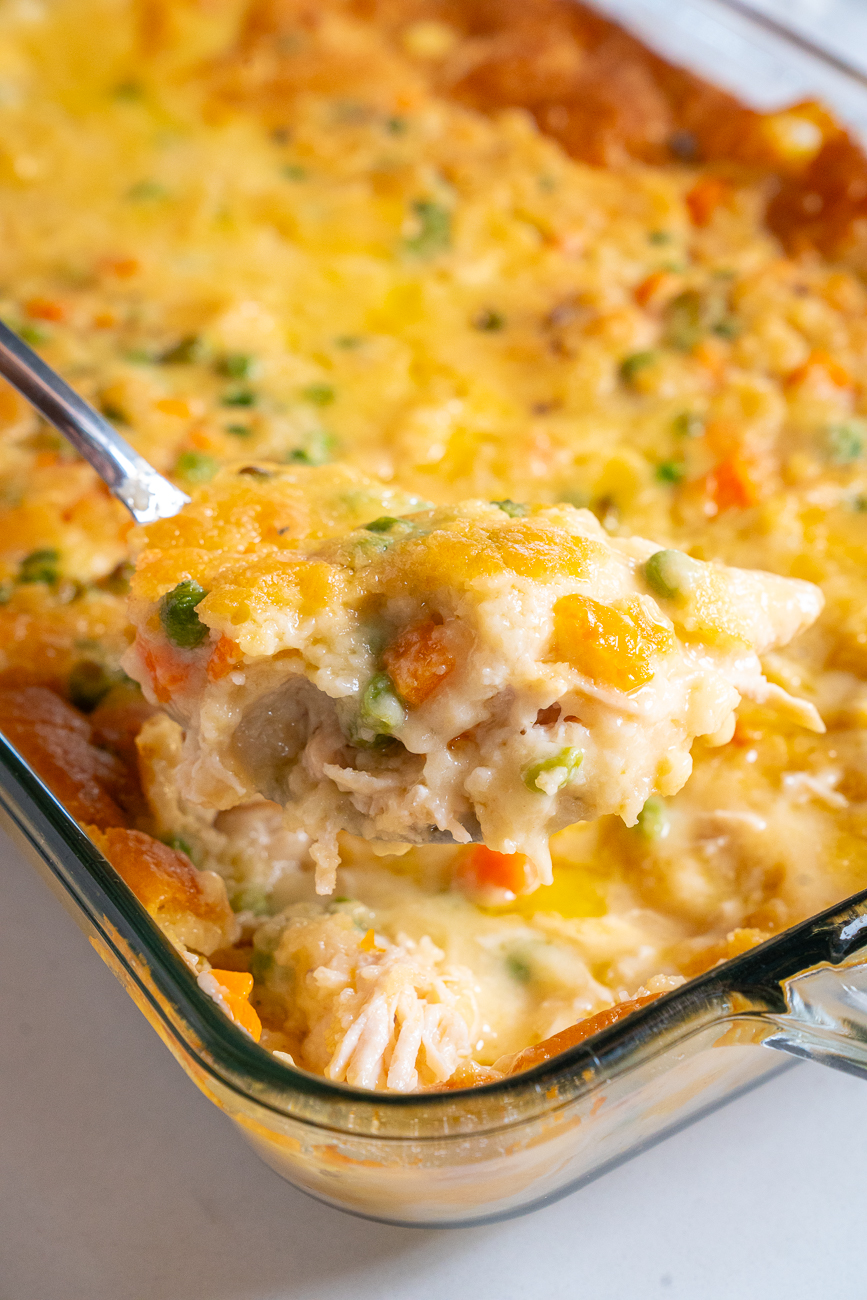 This incredibly easy casserole creates its own fluffy biscuit topping and rich gravy as it bakes, all in a single dish. The key is to layer the ingredients without stirring for the perfect result.